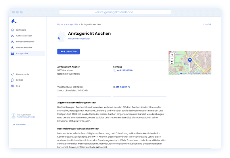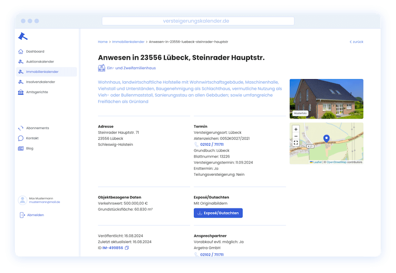 - Zwangsversteigerungsobjekt-Exposé: Dieses Dokument enthält wichtige Informationen über das zu versteigernde Objekt, wie z. B. Lage, Beschreibung, Gutachten und Mindestgebot.